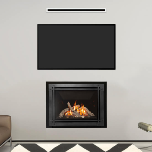 Le foyer Valor H5 est doté d’un échangeur de chaleur secondaire intégré. En effet, cette conception améliore naturellement la convection de l’air chaud. Ainsi, le système élimine le besoin d’un ventilateur mécanique. De plus, la chaleur se diffuse de façon silencieuse et uniforme. Grâce à la technologie HeatShift, la chaleur excédentaire peut être redirigée vers d’autres zones. Donc, vous optimisez le rendement tout en protégeant les surfaces environnantes. Avec une puissance atteignant 30 000 BTU, ce modèle assure un chauffage fiable et efficace. ⚙️